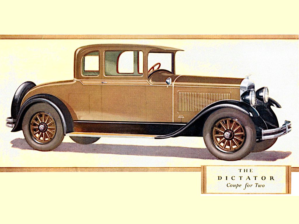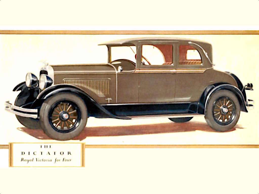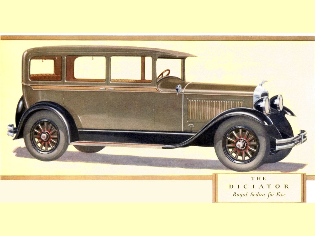 The GE model Dictator was introduced sometime in September of 1927 and remained in production until October of 1928 (there would be no Dictator’s assembled for the next six months).  Several mechanical improvements were introduced at the start of GE production.  The front axle was redesigned which again allowed for the use of wooden spoke wheels (disc and wire were optional).  The braking system was redesigned and a fuel pump replaced the vacuum tank.