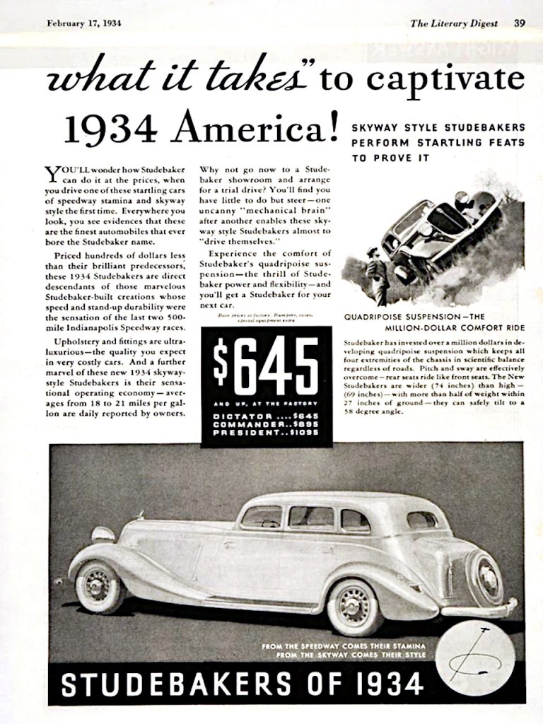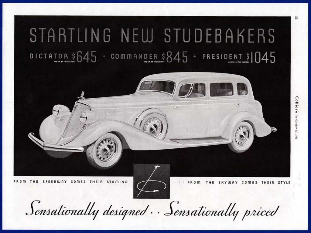 | A model production began in September of 1933 and finished it’s run in December of 1933. A “Year Ahead” *Special A was introduced in January of 1934 and finished it’s run in October of 1934. Studebaker started the A & Special A model serial number at 5,145,001, but does not define ending serial number. TCCD places actual production units at 45,841. The President Land Cruiser first went into production in April of 1934 and then later the Commander and Dictator were phased in. | |||