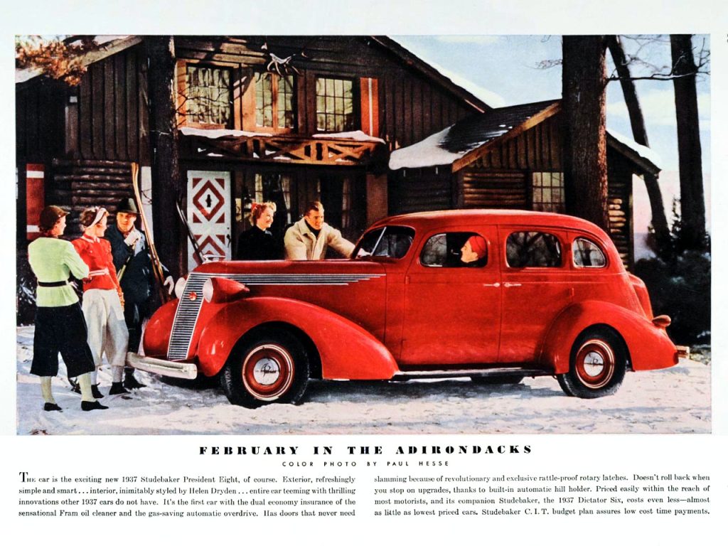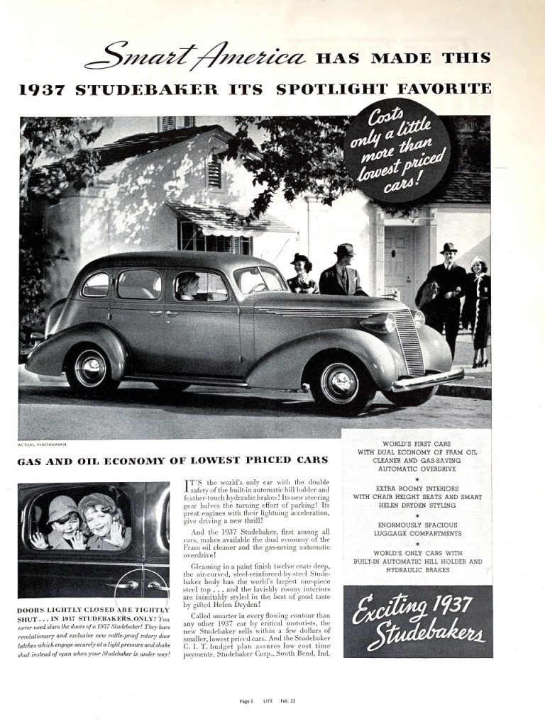 As 1937 was the second year of the current design cycle little is done to the sheet metal.  All 1937 Studebaker’s began to use the hypoid rear axle, this allowed the for a lower floor, providing greater leg room in the rear compartment of sedans.  The body style modifications were primarily the radiator grill and louvers.  The hood now opened from the front, using an alligator style hood, and a new hood ornament was used, doubling as a hood release lever.