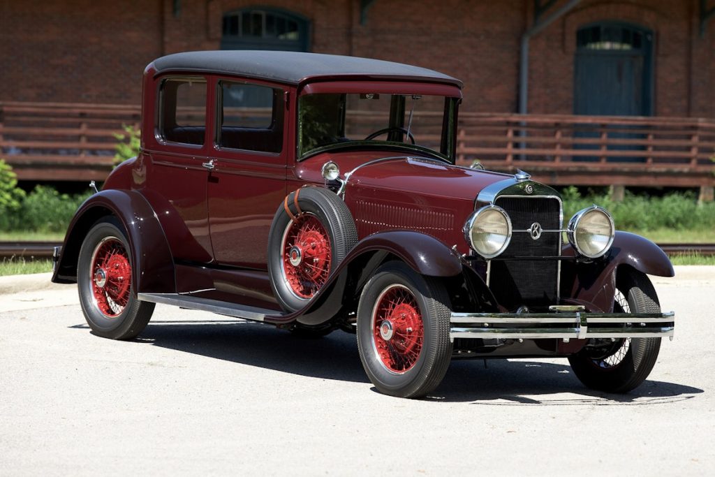 This first President Eight was introduced in the New York Auto show in January of 1928. It was first offered in five body styles. 5 and 7 passenger sedan, 5 and 7 passenger State sedan and a Limo. The State sedans were equipped with six wire wheels, while the regulars sedans has wooden wheels. The Wheelbase was 131 inches. The prices ranged from $1,985 to $2,450 FOB the factory. The double belt line moldings, enclosed a contrasting color panel. The fenders were crowned and beaded and a new double bar bumper was installed. A new “8” badge was mounted to the fender crossbar, later mounted to the headlight cross bar. Exterior bright work was chromium plated. New instrument panel was designed and by June the State Cabriolet, Tourer, and State Tourer models were added.