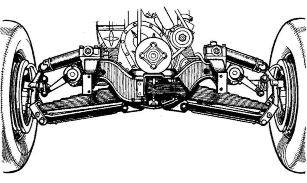 The Planar system consists of a transverse leaf spring extending across and connecting the lower ends of the right and left steering knuckle supports. Tubular links connect the upper ends of the steering knuckle supports to the frame side rails on each side.