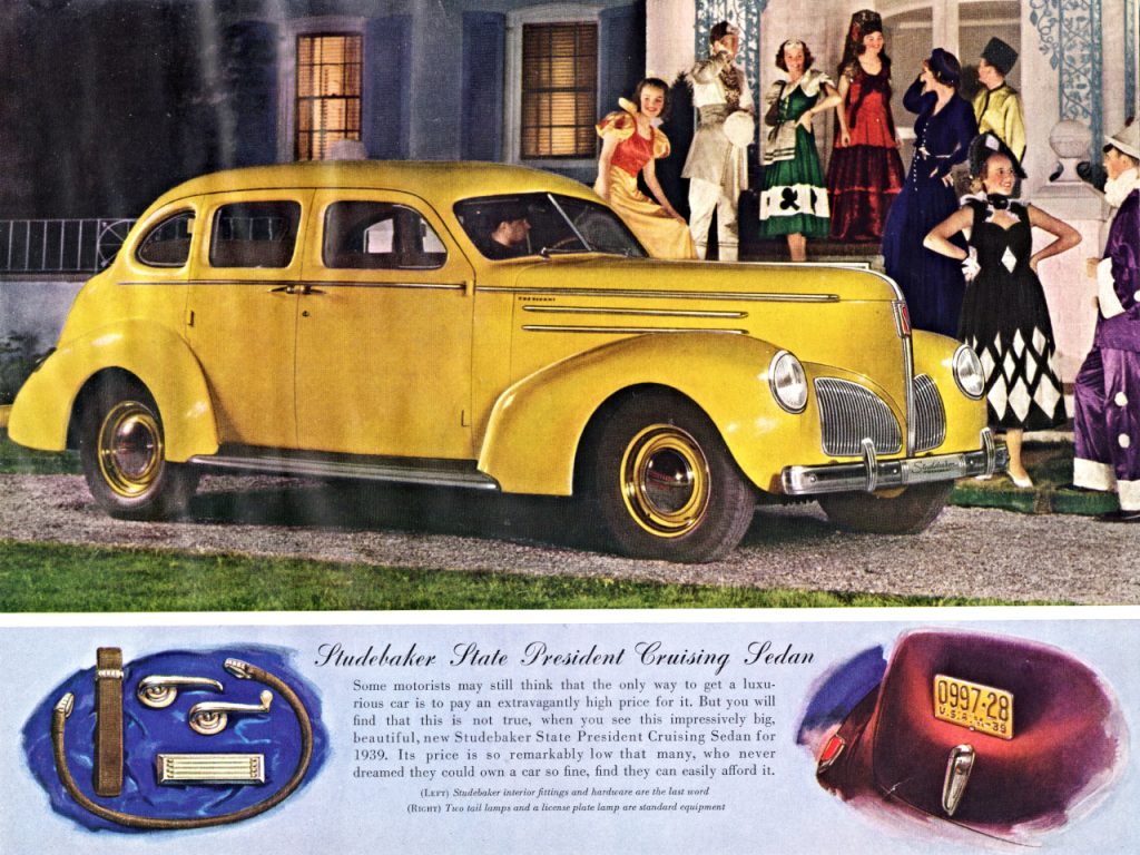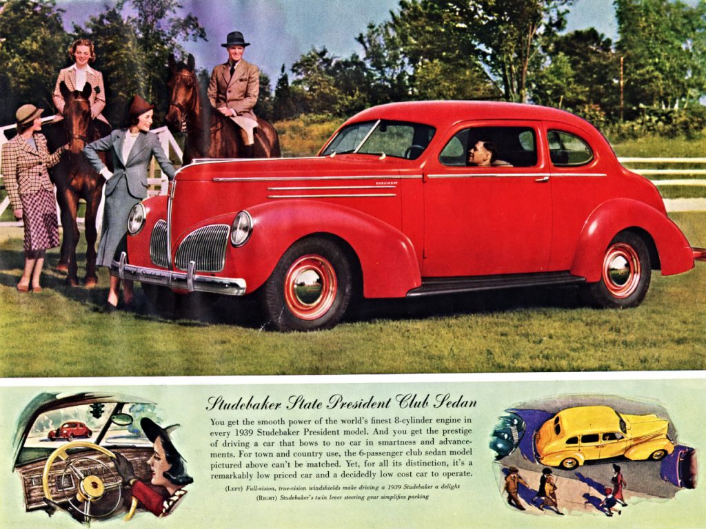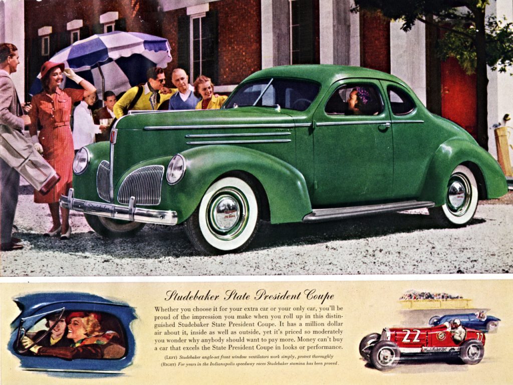 In this model year, the famous Raymond Lowery is hired to do a “facelift” of the 1938 models. He again turns to the front of the car eliminating the center radiator grill and placing two separated die-cast grills, well out on the fender aprons. The headlights are recessed into the front fenders with oval lenses. The new optional “Climatizer” is installed under the drivers seat, the former location of the battery, which is moved under the hood. The gear shift can now be optionally mounted to the steering column. The over-drive option is again modified and a new transmission design is installed.