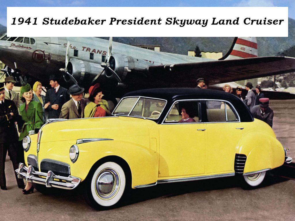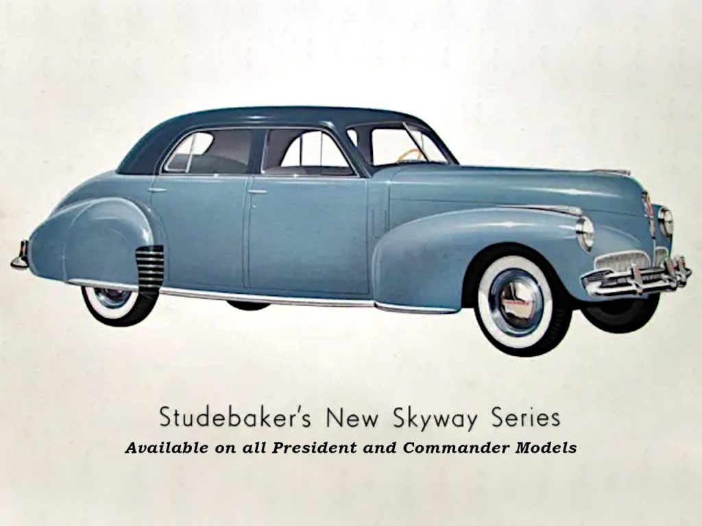 This model year, the Land Cruiser model is reinstated. Later in the year a Sedan Coupe was added, with it’s unique one-piece curved windshield. All models can be had in either the Custom, Custom Deluxe, Deluxe-tone, or Skyway series. Custom models were plain Jane automobiles, they had fender lamps, but no other extra trim. Custom Deluxe models had better interior appointments, but no other extras. The Deluxe-tone cars had chrome instrument panel moldings and two-tone interiors and exteriors. The Skyway model had wide chrome bands around all the windows, chrome fender lights, two-tone instrument panels, two-tone exteriors with tapering contrast color band, and bolster type pleated upholstery.
