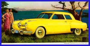 Referred to by the sales ad people as the “Next Look,” the design had been planned for a 1949 release, so production for the 1950 models started in late July of 1949 instead of September.  The spinner had been under consideration for years with the first sketches seen as early as 1941 and an actual mock-up produced in 1943. Robert Bourke was Lowey’s chief in house designer and penned most of what was actually released for 1950. However, Virgil Exner and Gorden Buehrig, both had significant influence on the design, but were no longer with Studebaker when the final release came.  Not all of Studebaker engineering nor the dealers, were early fans of the design, so the later sales success was quite unexpected.
