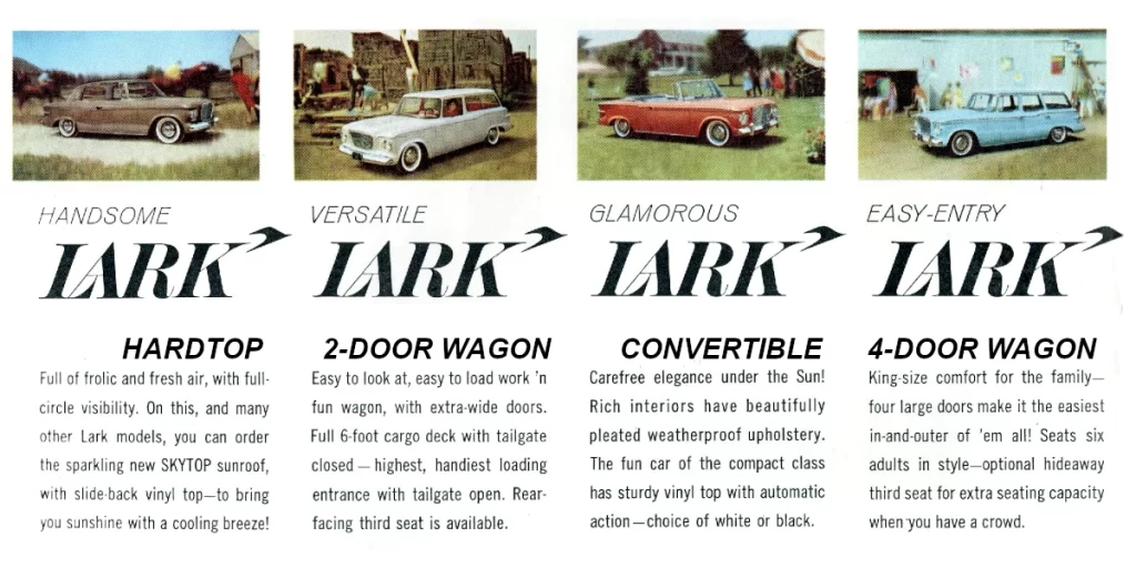 “The new Lark line was introduced to the press on October 7th, 1958, to dealers on October 20th and on November 14th dealers could start selling them. Early sales were very brisk.” (ref: Fred Fox TW September 2009)