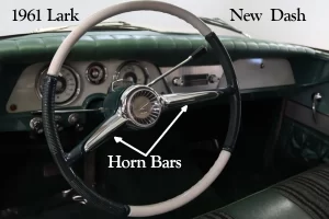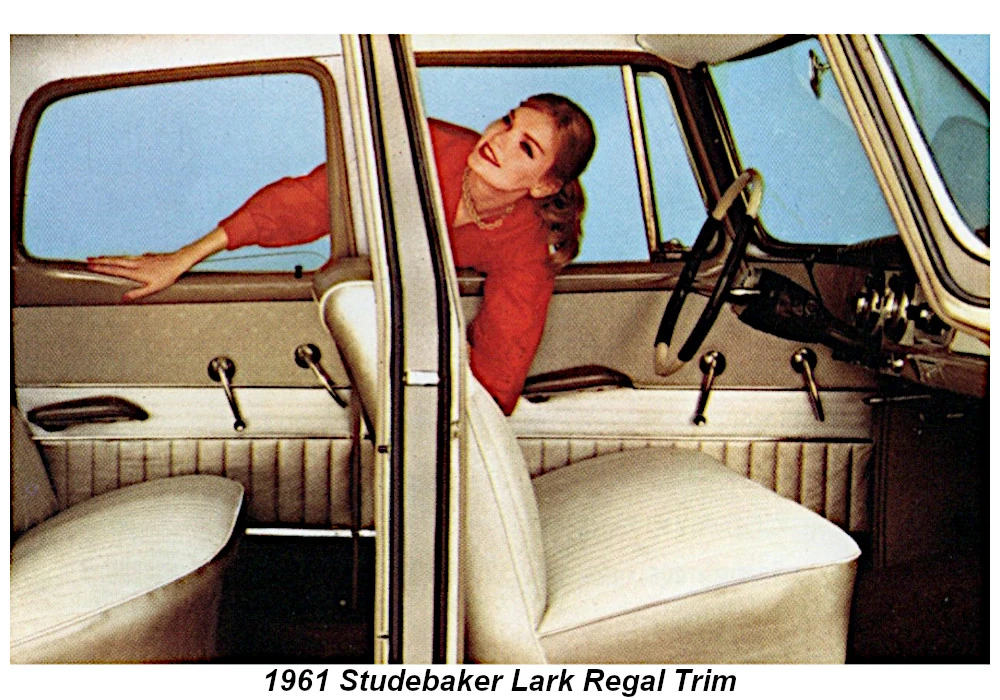 The 1961 Lark interiors were for the most part color coordinated with the exterior colors. The upholstery was a combination of vinyl and woven fabric or total vinyl.