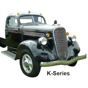 The 1938 to 1940 K-Series trucks began production in November 1937.  K-Series production would overlap the J-Series by a few weeks and last through 1942.  With the war looming, a few would be built between January-August of 1941 (338), (159) more in December of 1941 and another (100) in February of 1942.  The K-Series would sport a new grille which now will have a series of simple horizontal bars.  These trucks would also have a large “S” badge on the lower grille.