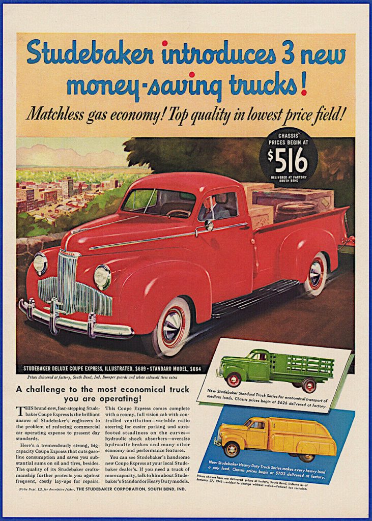 In 1941 Studebaker has made a decision to concentrate it’s commercial offering to pickup’s and light-duty trucks. The M-Series is release in ½ ton (M5), 1-ton (M15), 1 ½-ton (M16). Experts think the M10 number may have been reserved for a ¾-ton model which was never released. The M5 and M15 used the 170-ci 80-hp engine, while the M16 gets the 226-ci Commander Six. The trucks would come in either standard or DeLuxe trim. Standard trucks has painted grilles and black fenders. Deluxe models had stainless steel grille bars, bright metal side trim moldings, body colored fenders and a hood ornament.